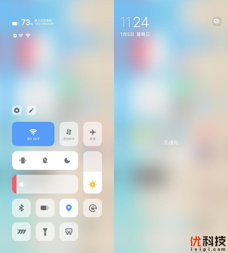 至于通知和快捷方式调用起来也是更加的方便,从屏幕的顶部左右向下滑动即可呼出,并且快捷中心图标还采用了不同配色设计,整体上更加的鲜明和直观,同时支持用户自定义排列,自由度更高。