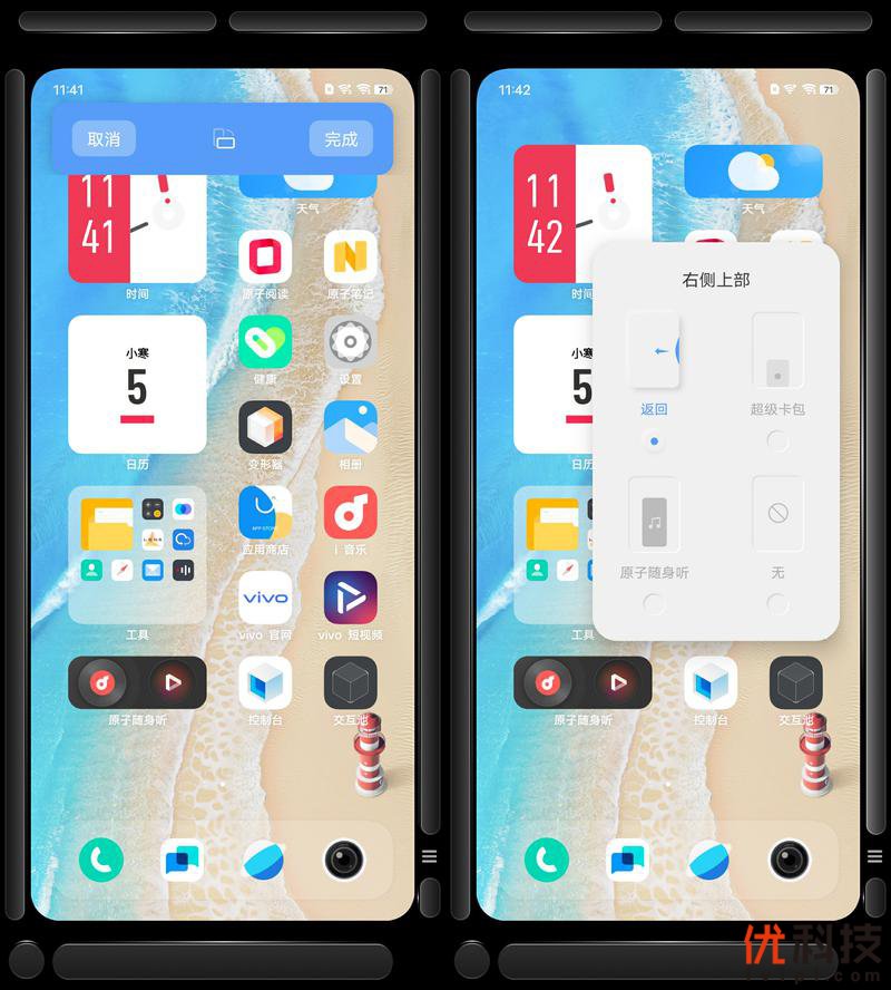 关于系统的交互池设置方面依旧有着极高的自由度,用户可以设定屏幕四周向内滑动的不同功能,例如开启原子随身听、超级看或者小窗口模式等快捷功能。