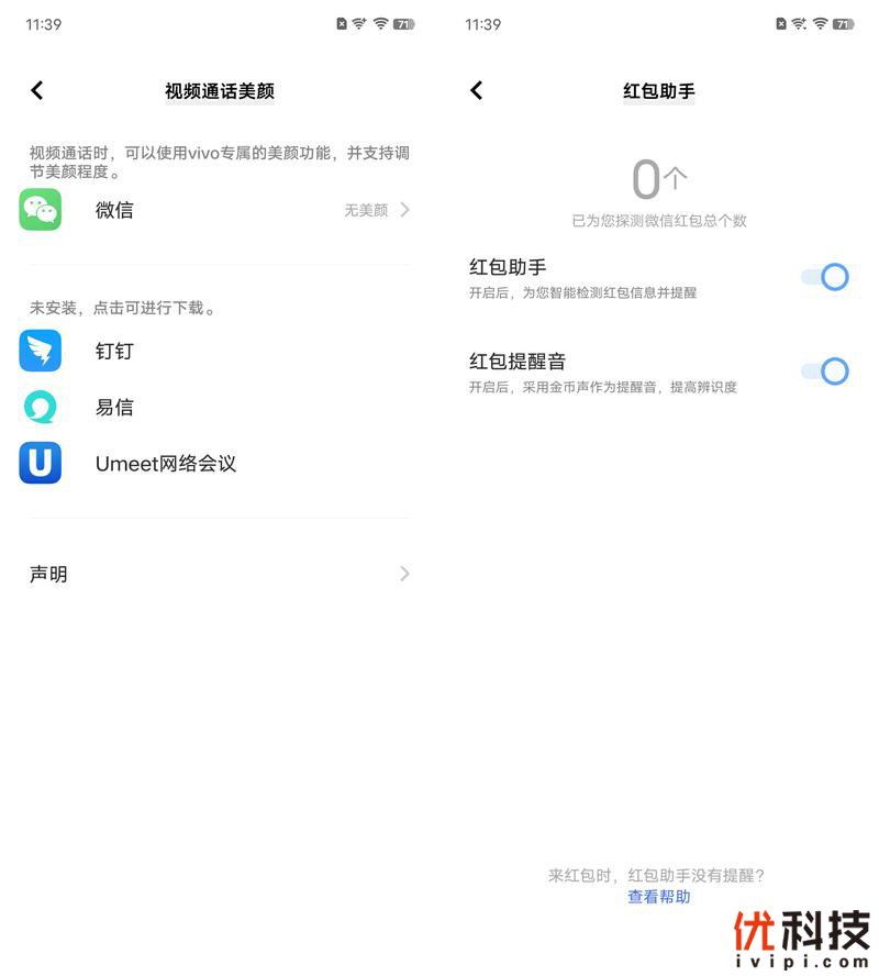 另外系统内依旧支持视频通话美颜功能,支持多款软件,例如微信、钉钉等程序均支持视频通话美颜效果,同时用户还可以手动调节美颜的程度。而系统内还保留了红包助手功能,开启该功能后系统将自动检测红包信息并提醒。