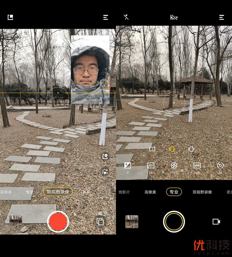 另外iQOO 9 Pro还支持视频画中画功能,开启后系统将会调用前后镜头同时拍摄,双视野录像能够给视频画面增加更为有趣丰富的视角,使视频内容更加丰富。该机还支持视频专业模式,在该模式下,可根据不同场景及内容的拍摄需求手动设置和调节各项参数,改变拍摄中光圈、快门、感光度等数值,同时相机会提供专业性的辅助显示,并支持手动对焦等操作。
