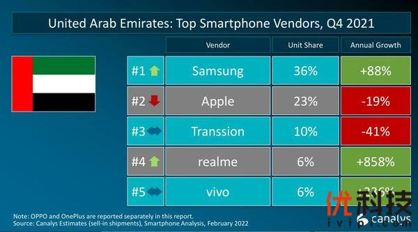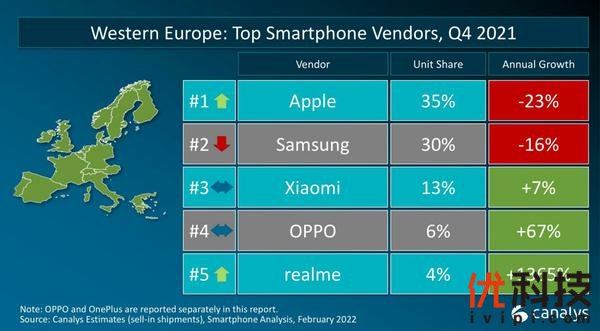 图片来源:Canalys智能手机分析(出货量统计),2022年2月