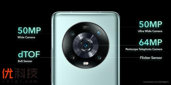 荣耀Magic4 Pro搭载5000万像素IMX766大底主摄,5000万像素超广角镜头,支持100倍数字变焦的6400万潜望式长焦摄像头和1200万超广角+3D ToF前摄,再加上多点激光对焦传感器和8通道多光谱色温传感器,通过多帧融合、多传感器融合计算摄影技术的加持,从硬件和软件双轨道大幅提升整体的摄影能力。