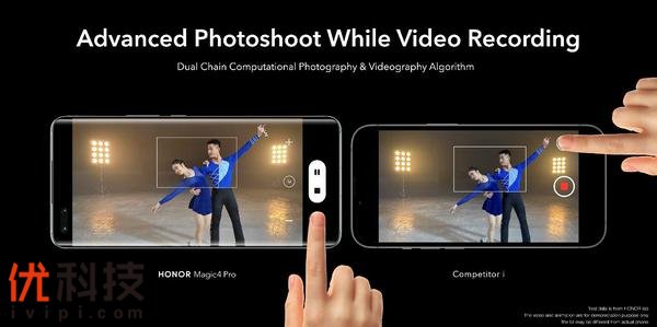 不仅如此,荣耀Magic4系列还提供了全新升级的“录中美拍”功能,进一步将摄像和摄影两个操作完美融合,在拍摄视频同时提供更好的拍照成像效果。荣耀基于使用洞察,发现很多用户在录像过程中有拍照的习惯,比如在视频拍摄文艺演出或体育比赛时候,抓拍精彩的动作一瞬;或者视频拍摄小孩、宠物等难以配合的对象的时候,定格难得的表情瞬间。普通的录像抓拍功能往往采用视频中间帧截取的简单方式,得到的照片清晰度和光线质量难以保证。而荣耀Magic4系列的“录中美拍”功能,通过AI影像技术和多主摄融合计算摄影技术,在拍摄视频的同时,可以实现暗光环境拍照的更佳光影表现和长焦设定拍照的更佳画面清晰度,让用户在拍摄视频片段同时,可以留住更为精致和清晰的影像瞬间,让流动的精彩和刹那的美好可以兼得。