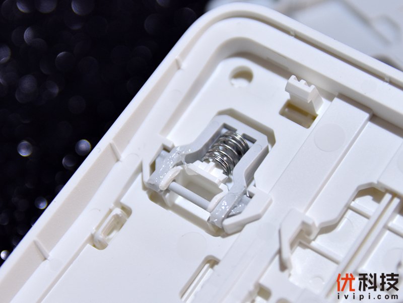 小米智能开关(零火版)的按键采用了可回弹设计,内部采用了双弹簧设计,做工精致。并且按键的击锤还采用了软体设计,耐用性更加的出色。