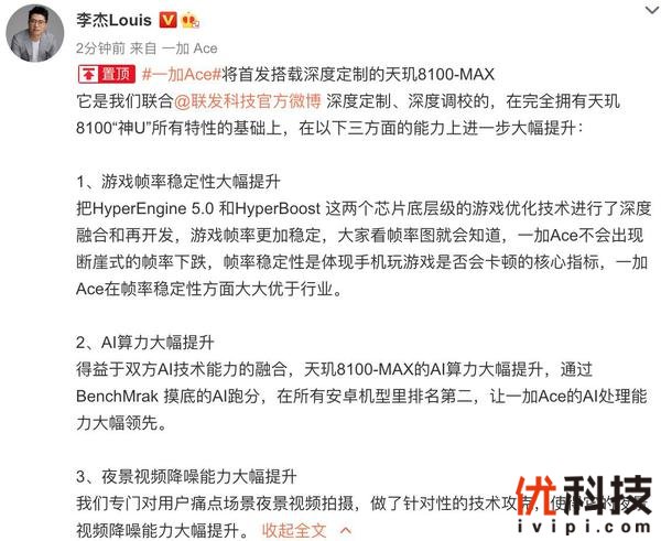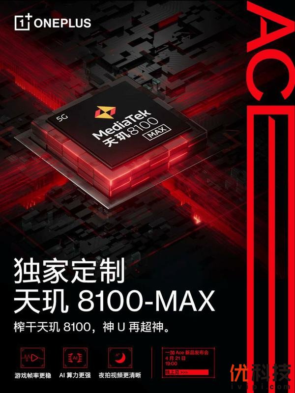 一加 Ace将搭载独家定制芯片天玑 8100-MAX