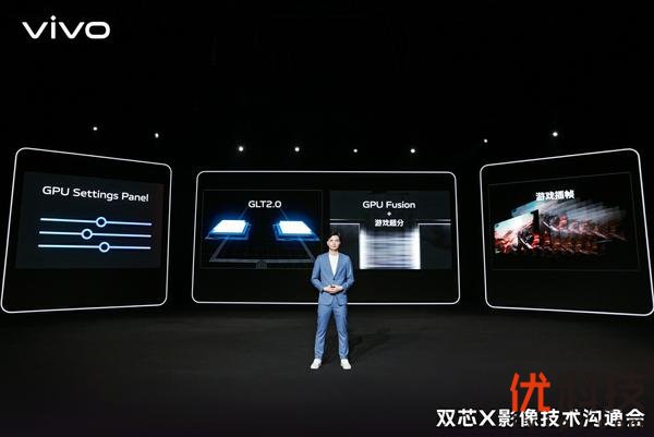 自研芯片V1+的性能突破还体现在游戏性能方面。作为本次沟通会上的行业首发技术,GPU Fusion通过MediaTek APU的AI运算能力,联动内外部多枚处理器的协同工作,与GPU共同完成游戏的画面渲染,释放GPU负载;同时调用vivo自研芯片的硬件级插帧算法优化帧率稳定性,采用GLT2.0升级算法多级拆分重载线程,达到性能和功耗平衡的效果。对于部分硬核玩家,vivo还开放了GPU Settings Panel,自定义画面显示效果与视觉体验。