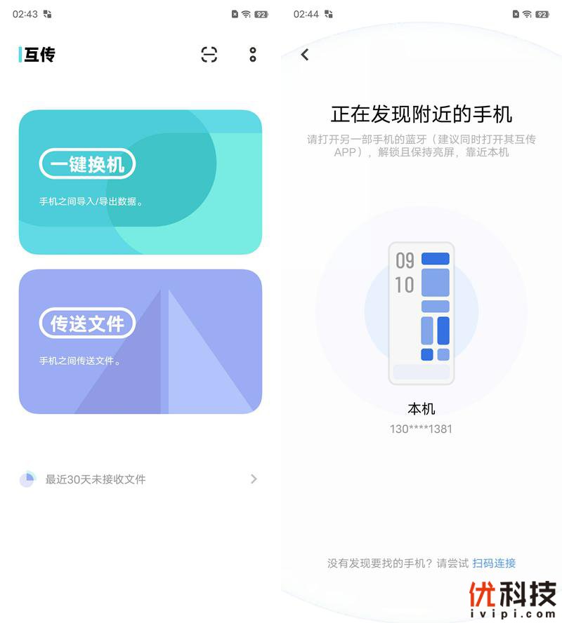 至于全新的互传功能则是非常的方便,具备一键换机以及传送文件的实用功能,其中一键换机支持多种模式可选,而传送文件则支持发送和接收,实用性更加的出色。