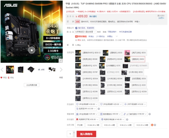 华硕B450重炮手主板——热卖榜探花 售价499元