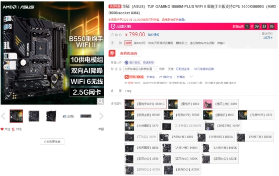 华硕B550重炮手WIFI二代主板——热卖榜榜眼 闪购价799元