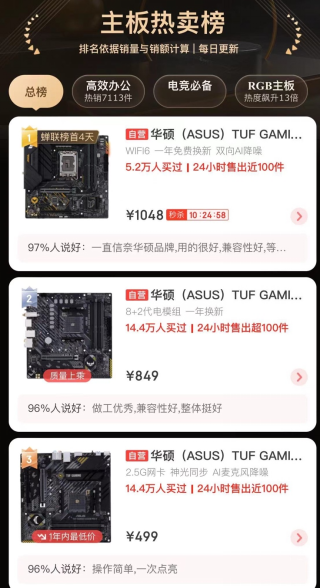 618必选 华硕重炮手主板霸占京东主板热卖榜前三