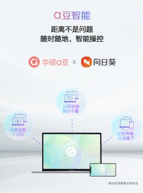 为打造更高效的年轻生产力装备,华硕a豆系列还联合了专业远程控制品牌“向日葵远程控制”,共同打造年轻用户的高效智能生态圈。打破时间地域限制,能轻松实现远程桌面、远程协助、远程文件传输等核心功能,更能实现跨系统远程办公,畅享云端体验。