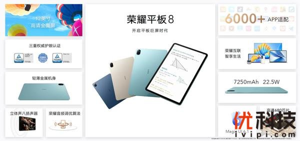 作为荣耀智慧生活产品的中重要一员,荣耀平板一直坚持以协同能力与特色功能而被用户所青睐。此次荣耀平板8不仅在价位上进一步降低消费者的入手门槛,更带来金属机身、业界首款12英寸护眼大屏、8扬声器音频系统等顶级配置。围绕家庭用户的移动影音场景与家庭学习场景,聚焦孩子护眼、学习效率等痛点,荣耀平板8通过全面的科技加持与用户体验打造,堪称影音、学习全面进阶的诚意之作,也是继百万销量的荣耀平板7之后的又一款荣耀标杆新品。