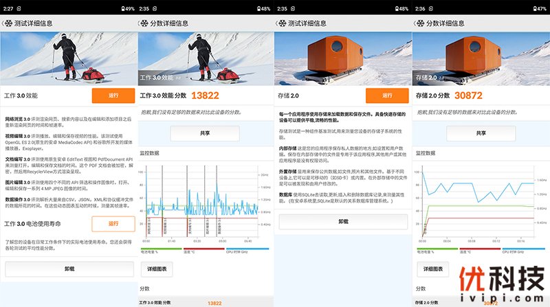 关于PCMark测试:PCMark是以整机综合性能为考量的测试软件,可精准反应手机日常使用的处理性能,多个日常测试场景,例如网页浏览、视频编辑、文档编写、图片编辑等等,并可以进行电池续航测试。