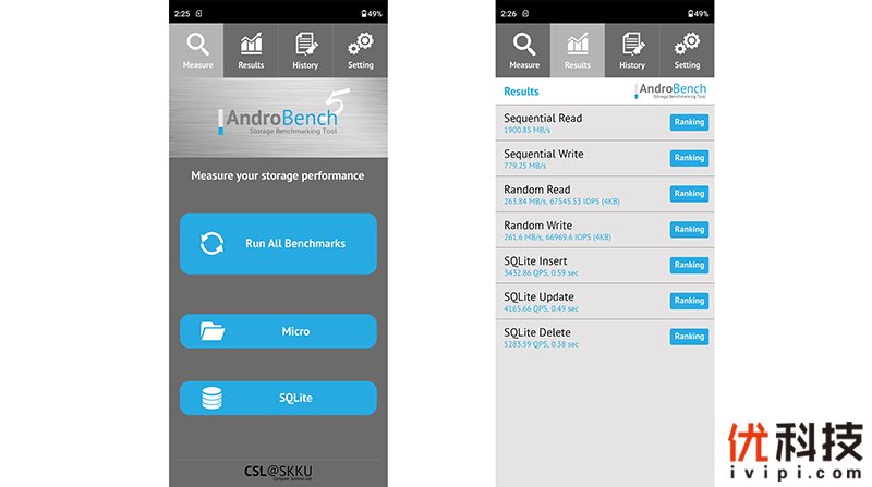 关于Androbench测试:AndroBench是一个基准测试应用,可以测量Android设备的4K随机存储性能,包括内部或外部存储测试。