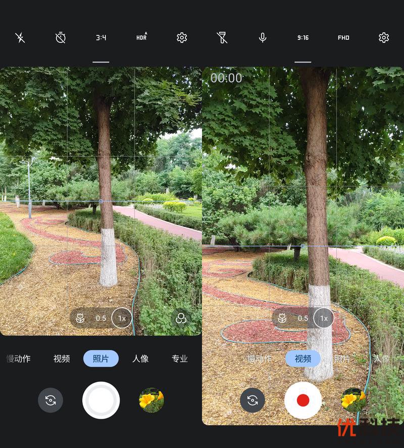 至于拍照取景页面操控也是比较直观。取景窗上方为快捷模式选择,下方为焦段选择和相机功能模式切换。