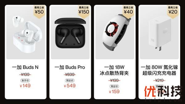 此外, “一加顶配IoT” 专场,包括一加 Buds Pro 智能主动降噪耳机、一加 Buds N真无线蓝牙耳机、一加 18 W 冰点散热背夹、80 W 氮化镓充电器等众多配件产品,至高立减 150 元。