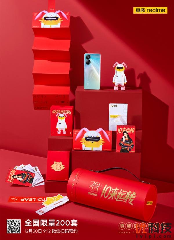 “10来运转”新年限定礼盒全国限量200套,将于12月30日上午9:12开启预约,关注【realme真我手机】微信公众号,输入“10来运转”即可参与预约购买,先到先得。