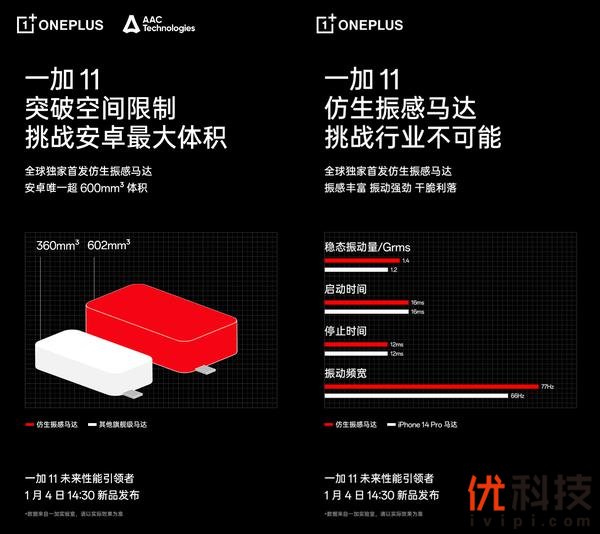 早在2019年,一加便与瑞声科技联合为一加 7 Pro定制当时安卓手机里尺寸最大、性能最强、响应最快的横向线性马达,刷新用户对安卓马达的认知。此后一加历代性能旗舰均搭载行业领先马达。顶级马达体验已融入一加的性能基因,此次独家搭载仿生振感马达的一加 11 将成为手机马达新标杆。