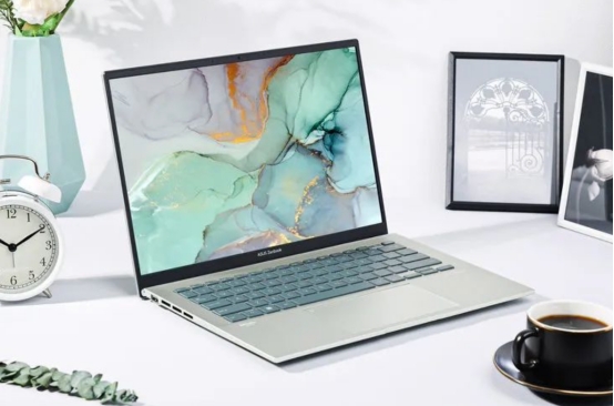 作为商务本,颜值非常关键,华硕灵耀14 2022影青釉色彩清新淡雅,还原宋代名窑影青瓷配色,国潮范儿十足的颜色搭配机身A面干练简约的几何线条,展露职场精英高级大气的商务风范,同时也成为办公桌上一大亮眼装饰。