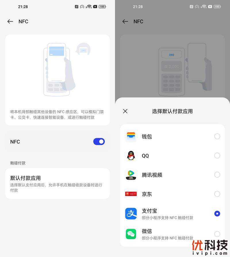 一加11搭载了全功能NFC,在系统内可以选择通过NFC来进行付款操作,用户可以自定义选择默认付款应用。