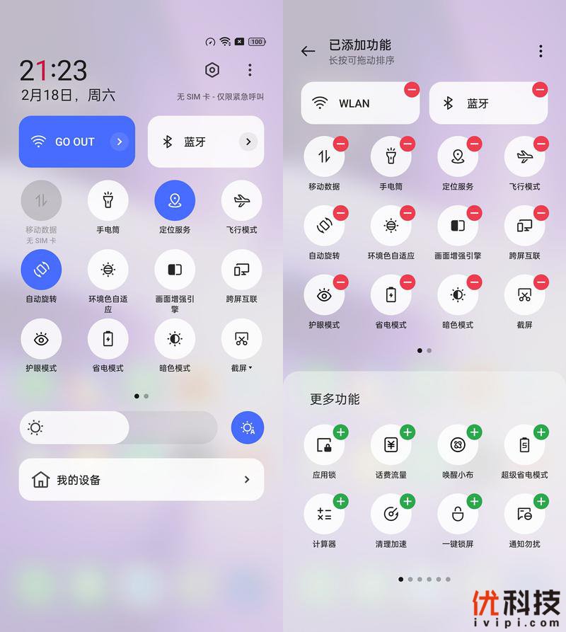 至于快捷中心设计上也是功能非常的全面,默认状态下展现半屏双排快捷方式,并且支持自定义编辑设计,便于提升用户操作。