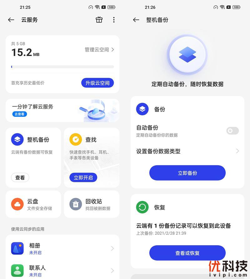 而系统内的云服务功能也是非常实用的,其集成了整机备份、查找以及云盘回收站等实用功能,并且还支持相册、联系人等数据同步功能。查找也是非常的有用,开启后可以对手机远程定位查询等操作,由于一加品牌和真我以及OPPO均使用ColorOS系统,所以在系统的查找中也可以查询登陆同账号的真我以及OPPO品牌设备,家庭使用更加的方便。