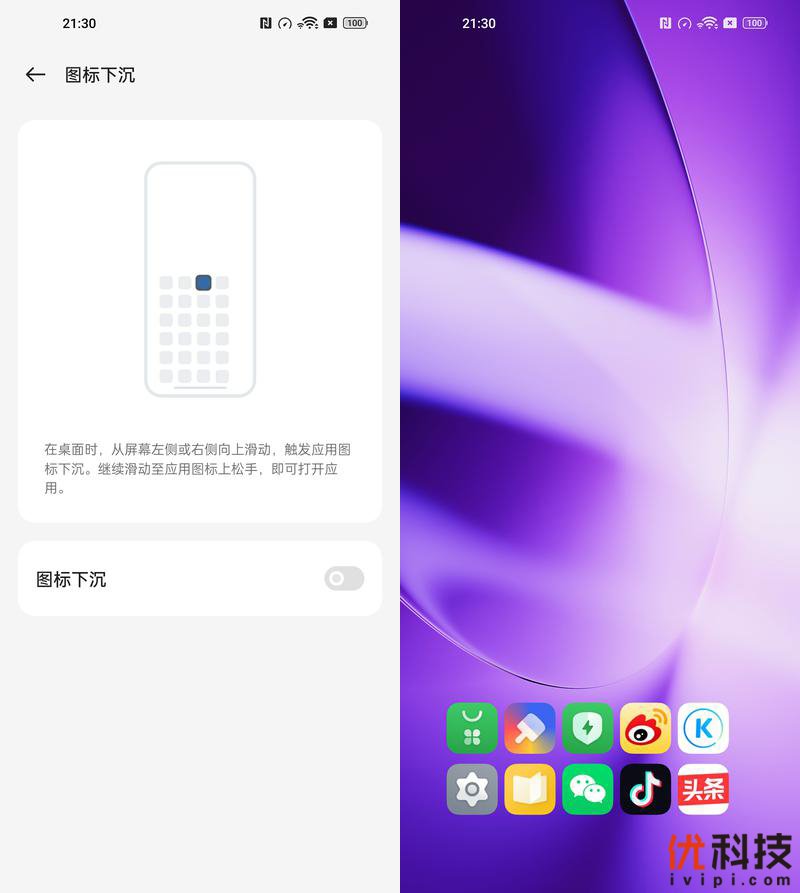 而图标下沉功能则是更加的方便用户的单手操控,操作起来也是非常的简单。