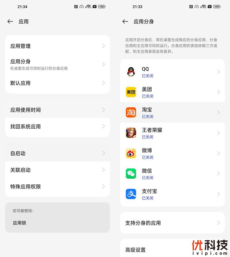 至于应用体验方面,则是支持应用分身功能,一部手机可以登录多个应用来使用,同时还自由自定义选择应用的自启动以及关联启动。