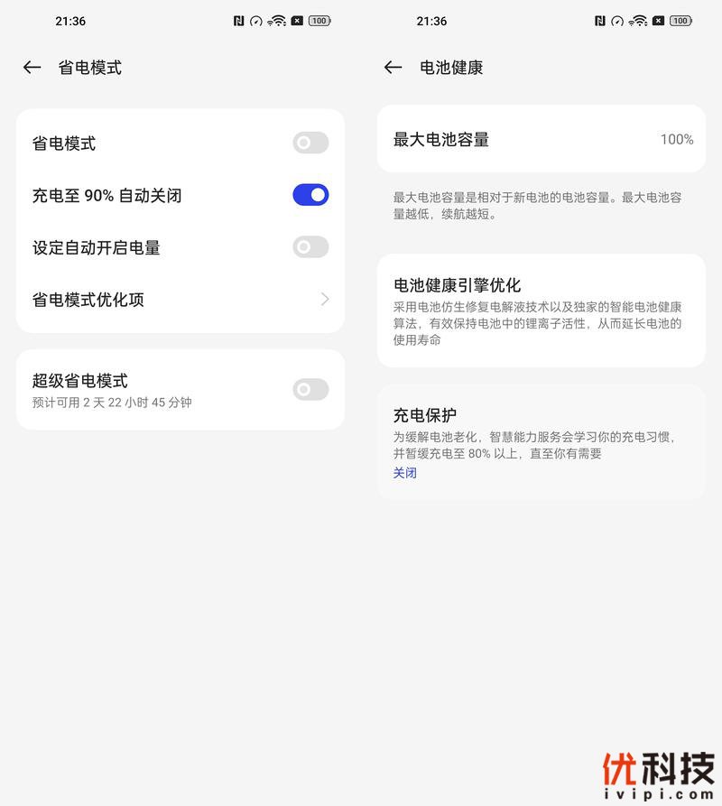 在系统的电池选项中,用户可以了解到手机的耗电情况,并且可以选择多种续航模式,而其中的超级省电模式则可以预计可用市场,若是遇到单机出行的情况下可以视情况而定。另外在选项中还支持电池健康度查询功能,可以实时了解手机的电池健康情况。