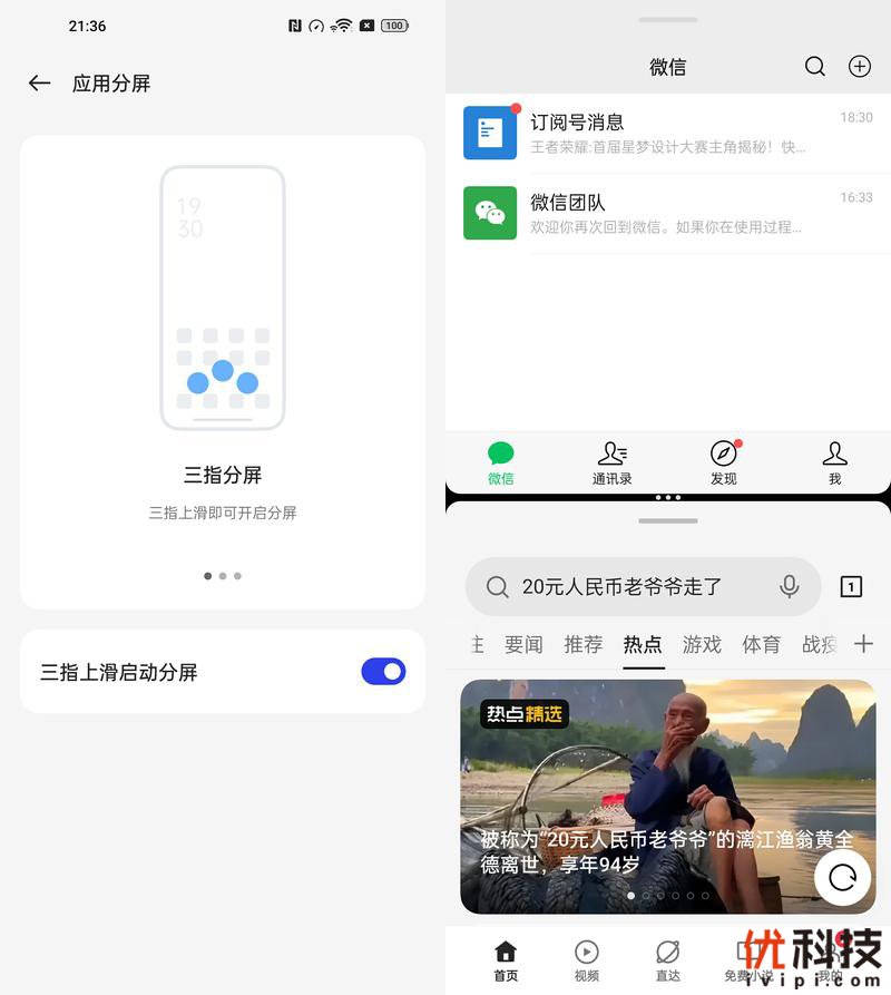 便捷性功能方面还支持应用分屏功能,仅需要三指上滑即可启动分屏,得益于大尺寸屏幕的加持,一机二用也不是不可以的。