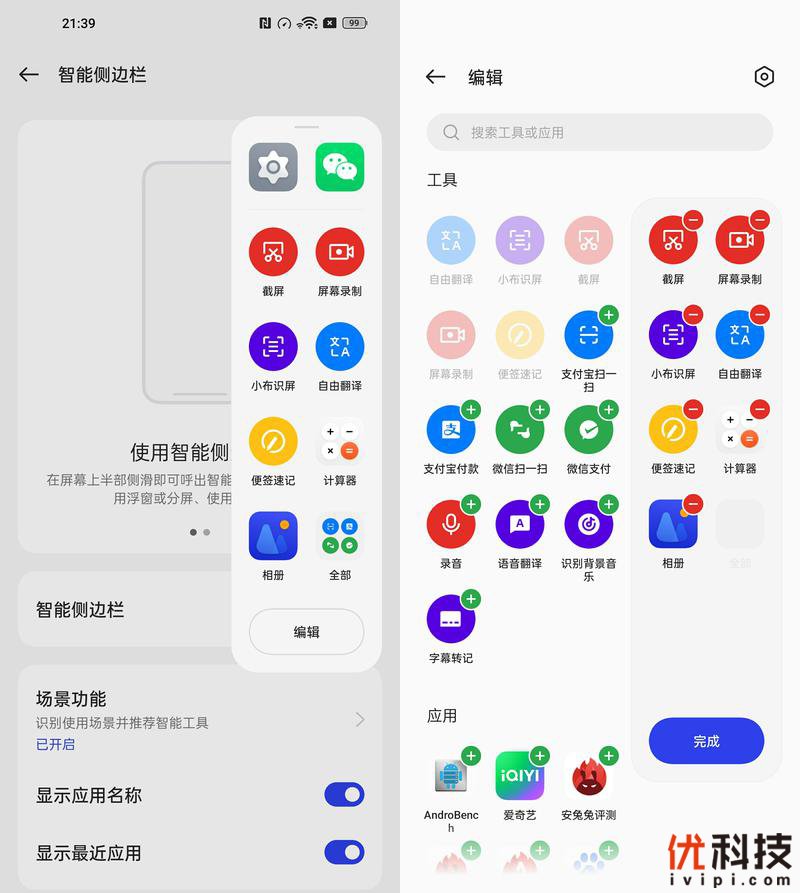 至于智能侧边栏则是进一步的提升了单手操作效率,仅需要互动即可以快速进入相关功能页面。