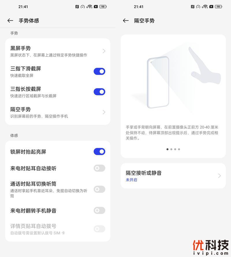 至于快捷操作方面,系统内支持黑屏手势功能,例如抬腕亮屏、双击亮屏或者是快速启动手电筒等操作,并且还支持隔空手势功能,可玩性也是非常不错的。