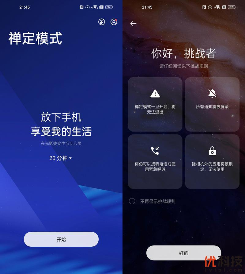 至于禅定模式则是一加手机最经典的功能之一了,开启禅定模式后,相当于让用户暂时脱离了这个忙碌的社会,静下心来思考。