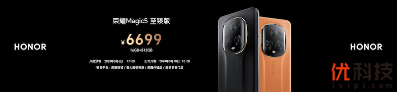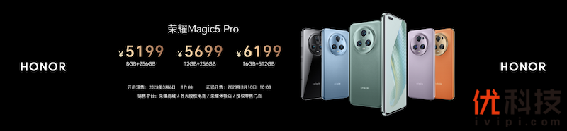荣耀Magic5系列自全球发布会以来,在全球范围内获得了一致好评。在巴塞罗那MWC大会上,荣耀共斩获42个海外媒体奖项,荣耀Magic5系列独揽其中的18个。此次国内发布会,荣耀Magic系列更是毫无保留,根植于强大的技术研发实力,用科技创新实现手机行业的多个“第一”,在续航、通信、影像、显示、性能等多维度全面技术爆发,树立起2023年高端旗舰手机的新标尺。荣耀Magic5售价 3999元起、荣耀Magic5 Pro售价 5199元起、荣耀Magic5 至臻版售价6699元起,将于3月10日起在荣耀商城、各大授权平台、荣耀体验店、授权零售门店正式开售。