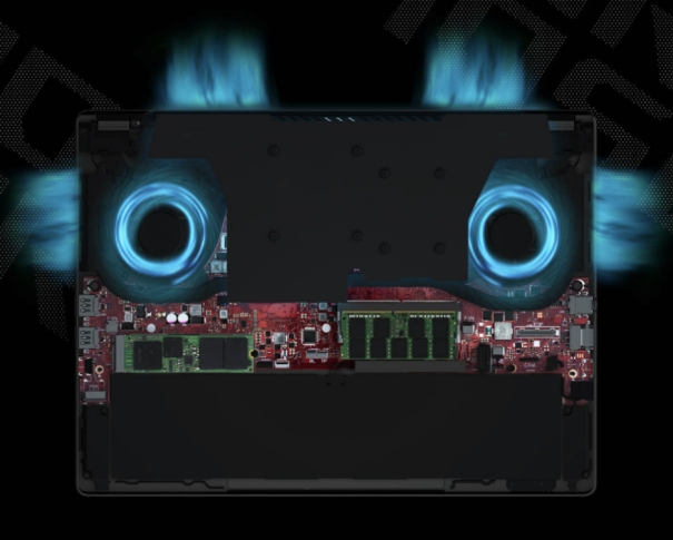 为了实现性能稳定运行,幻14全线升级至冰川散热架构2.0增强版,双绝尘风扇各配备84片扇叶,可带来强劲风力,配合定制化均温板、211片冰翼鳍片、四出风口,可提升内部热交换效率,疾速排出废热。此外,CPU表面更覆盖了暴力熊液金导热,最高可降低13˚C温度,散热效果大幅提升。
