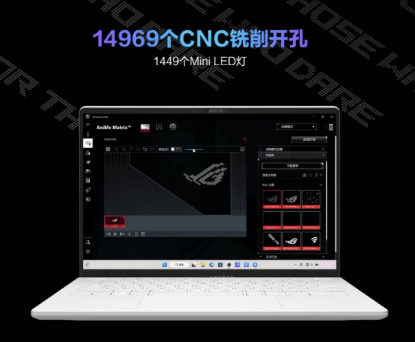 幻14星空版 2023则将个性潮流感拉满,最大特点在于其A面搭载了ROG独家的AniMe Matrix光显矩阵,通过CNC工艺精准铣削14969个孔位,并内置1449颗Mini LED灯珠,可显示趣味图像。此外,系统内置的OMNI宠物精灵拥有多款小游戏,主屏幕画面内容可实时反映至光显矩阵之上,实现“双屏”创意交互。用户还可通过奥创中心自由设定,客制私人专属图案、动画、文字等,丰富的内容显示,彰显个性气质,打造年轻人专属的高性能潮流好物。