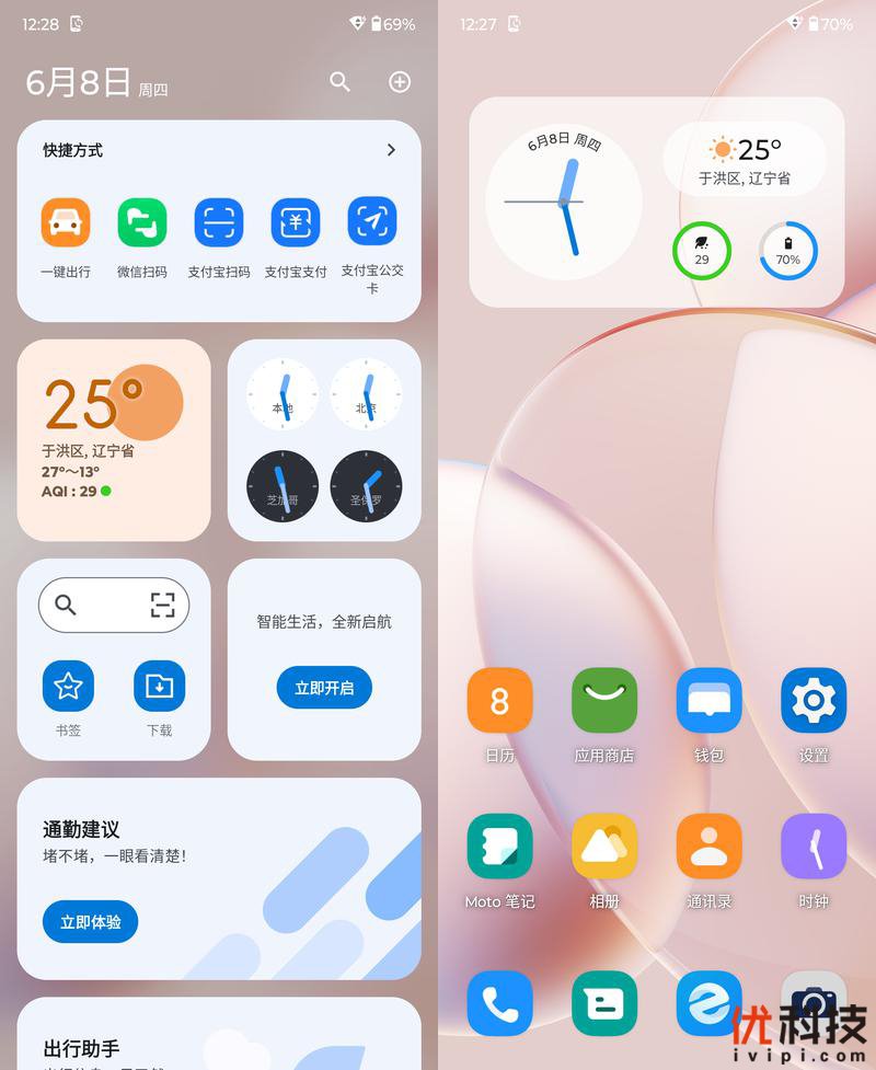 系统主页面设计更加的清爽,同时还可以选择多种小组件来提升效率,至于负一屏则是集合了多项快捷方式以及世界时钟等组件,更加的直观便捷,同时负一屏的各种组件还支持自定义编辑。