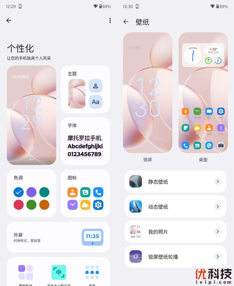 至于系统的个性化方面则是自由度非常高,内置了6大主题内屏动态壁纸,用户可以自由设定主题、字体、色调、图标以及外屏等等细节,打造独一无二的系统页面。