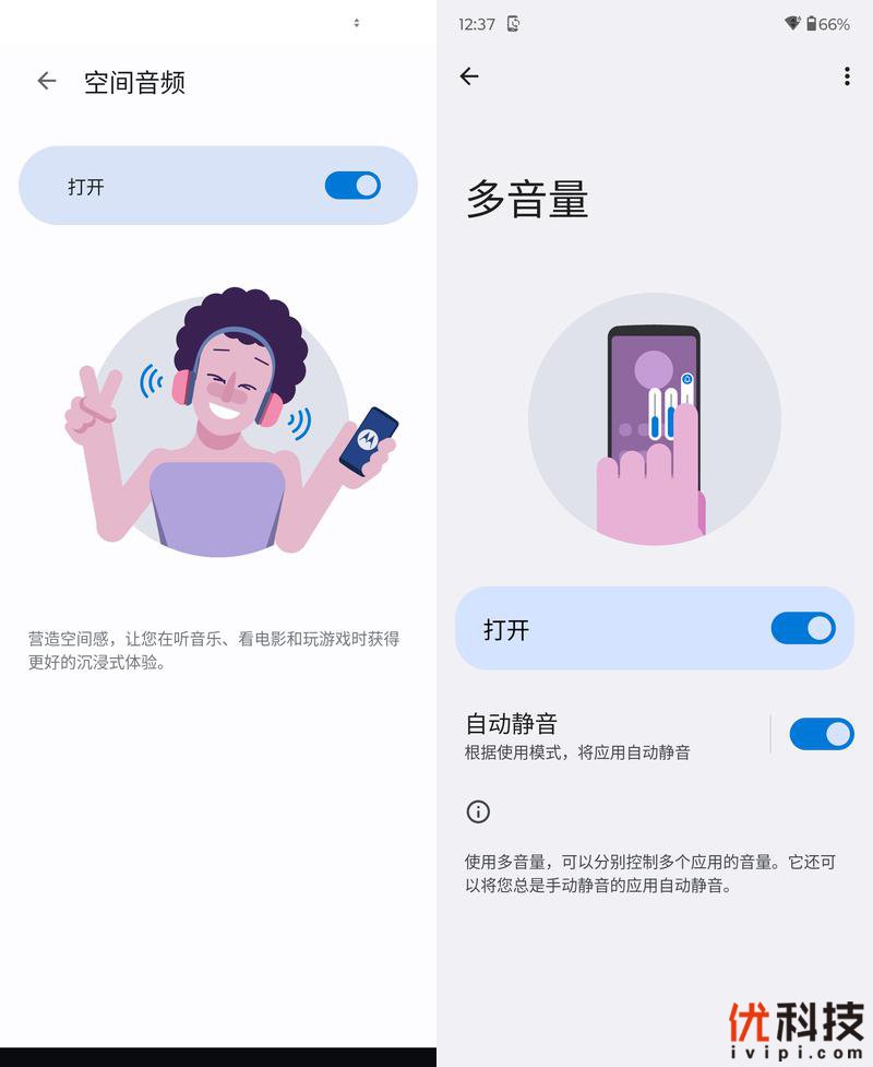moto razr 40不仅支持杜比音效,同时还具备空间音频,开启后在影音游戏时能够获得更加沉浸的体验,同时还支持多应用音量自由控制功能,让用户不必在切换应用的时候频繁选择音量。