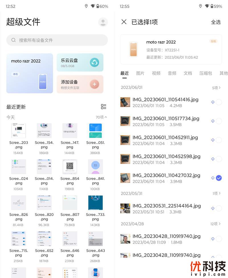 系统内的超级文件功能也是非常的好用,在超级文件中可以调用同账号下的其他moto手机的内部文件,前提是该机为开机联网状态。