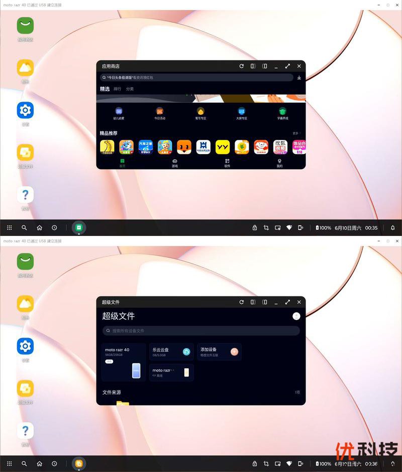 例如可以打开应用商店来给手机安装新应用,还可以通过超级文件调用手机端或者同账号下的其他moto手机中的可用文件,跨平台操作非常的方便。