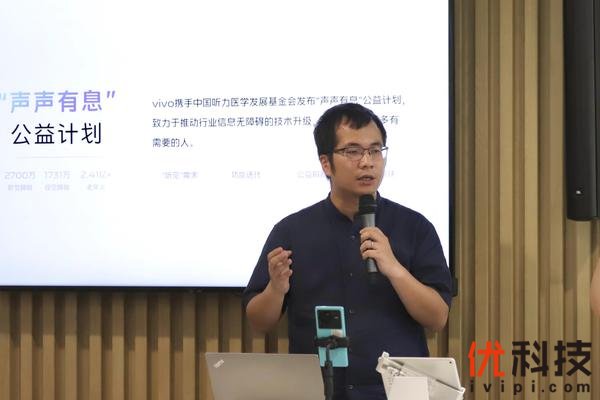 2021年12月,中国听力医学发展基金会携手vivo启动“声声有息公益计划”,旨在通过无障碍功能研发与升级、无障碍设备公益捐赠、联合调研、公益倡导等方式,改善听障人士的沟通现状和生活品质,营造更友好的信息无障碍社会环境。该计划首期完成了向133个听障家庭提供vivo无障碍智能设备捐赠,并发布了首本听障关怀白皮书《vivo人文科技报告》。二期面向500位听障青年发起“就业助力行动”,为其提供vivo无障碍智能设备,同时开展AI技能标注培训等技能培训,并发布了《听障人群就业调研报告》和纪录片《无声的青春》。