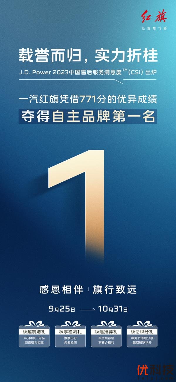 服务作为汽车营销中的一个重要环节,是一项复杂的工程,不仅仅是对产品的一种营销,更是对企业文化、观念的一种传播。红旗此次荣获J.D. Power自主品牌售后服务满意度第一,是对品牌在售后服务领域付出的肯定,更是对其一直以来坚持高品质、高质量服务的认可。这无疑将为红旗品牌在市场上的持续发展注入更强动力。未来,红旗将不断完善和丰富红旗服务的售后保障机制,继续秉承“以用户为中心”的理念,以更加卓越的产品和服务回馈广大用户。