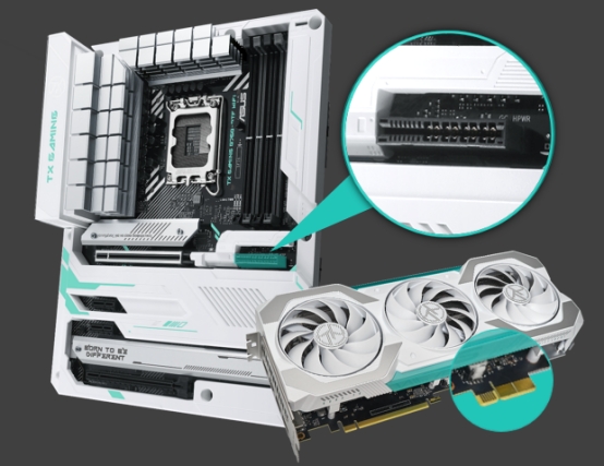 华硕B760天选背置主板延续BTF背置1.0的设计理念,将电源接口、CPU供电接口、SATA接口、前置USB接口、风扇接针、ARGB灯效接针等大量需要连接线材的接口移至主板背后。更取消了显卡外接供电设计,通过BTF 2.0显卡背置供电金手指与BTF 2.0主板供电插槽,正面无需连接供电线,即可为显卡供电。且主板兼容普通显卡,满足玩家更多需求。还有全新显卡易拆键设计,拆卸显卡更方便。