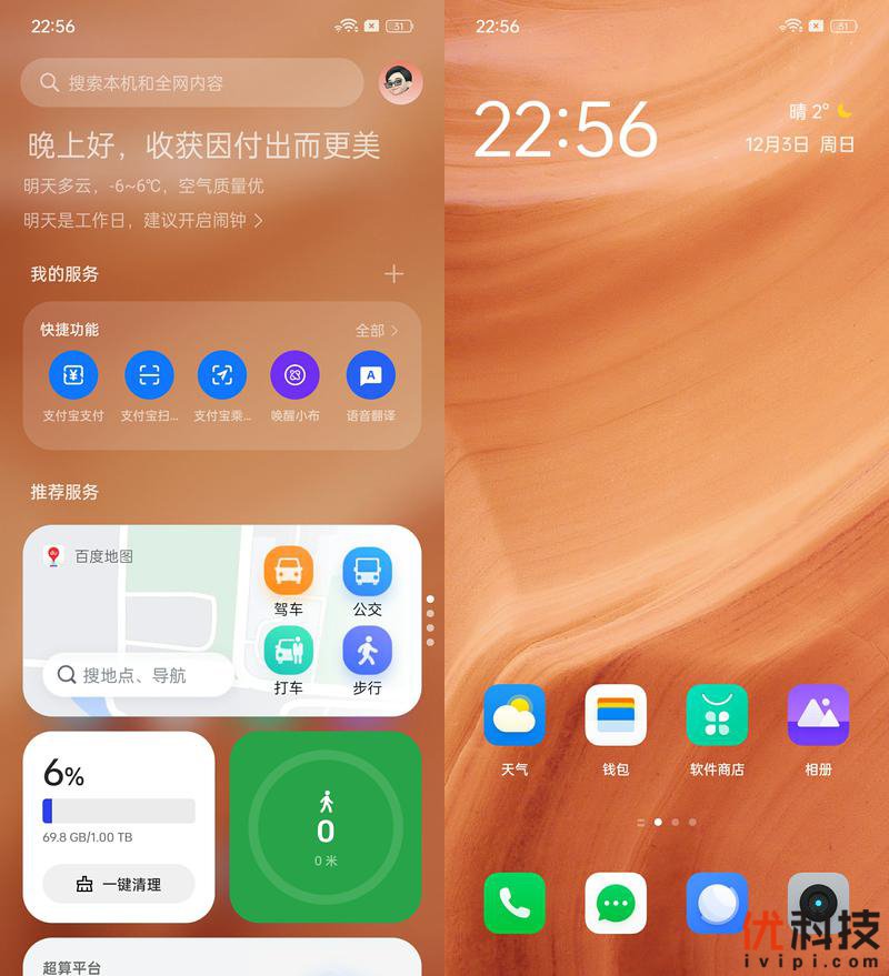 首先UI设计方面非常的精美,页面动画流畅,配合着LTPO智能变帧,体验感非常的不错。同时系统内支持多种小插件来美化桌面,提升便捷性,另外负一屏则是聚合了多项实用快捷卡片,并且支持自定义排列,一键直达的功能在操作上也是非常的方便。