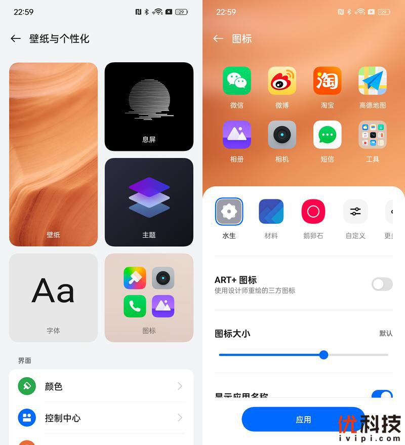 在系统UI方面用户也是有着极高的自由度,用户可以在系统内的壁纸与个性化选项中自由设定壁纸、熄屏、字体、图标等细节设置。