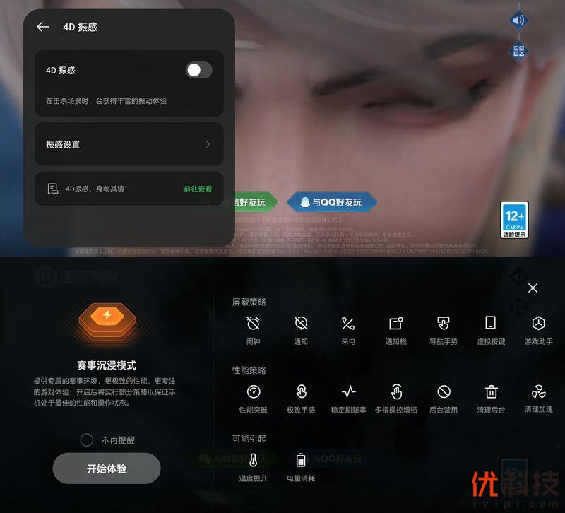 其中4D振感功能体验还是非常的不错的,在例如王者荣耀等游戏中,出现击杀的时刻,手机则会发起振动来增加对游戏的体验效果,并且该机还支持赛事沉浸模式,开启后将会屏蔽闹钟、通知、来电等影响游戏体验的元素。