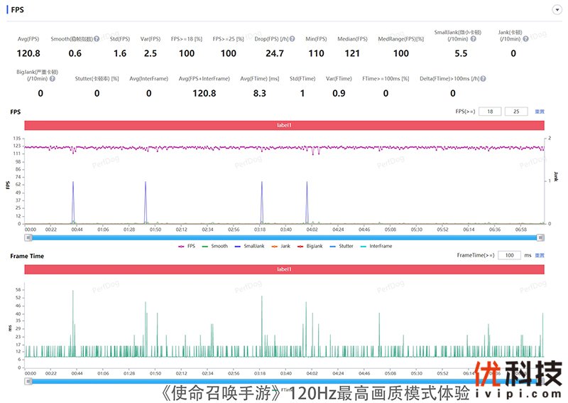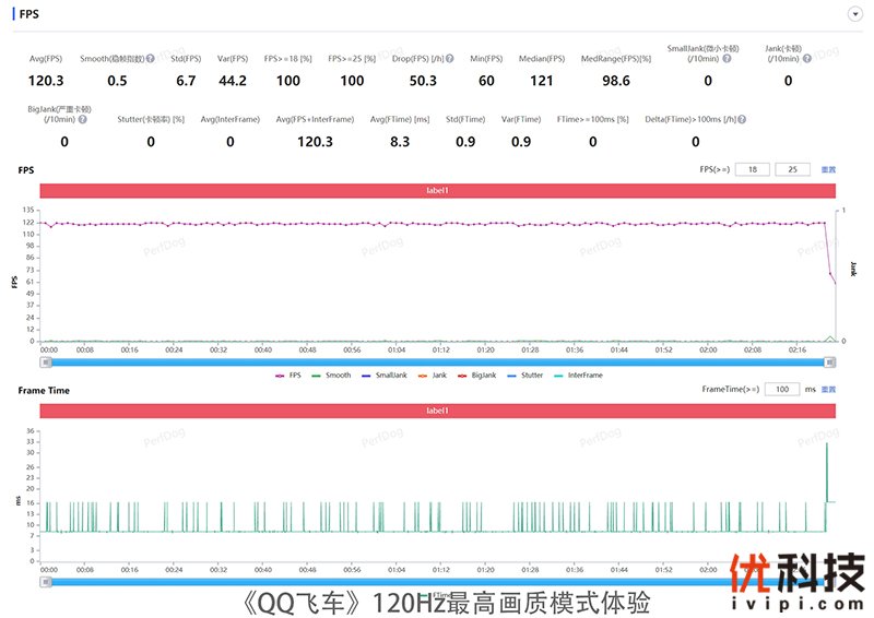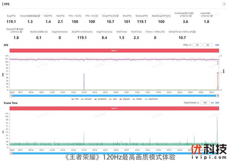 流畅度表现方面从perfdog性能分析可以看出,真我 GT5 Pro运行120帧最高画质的王者荣耀、QQ飞车、使命召唤手游都是毫无压力,而90帧高清画质的和平精英也是极其流畅,其中的帧幅波动也是源于游戏内的特殊场景。而60帧的最高画质原神也是有着平均59.5帧的不俗表现,可以看到非常的稳定,毕竟在游戏中并没有简单的跑图,而是进行副本任务,更加真实的模拟用户的游戏体验。综合来看真我 GT5 Pro的游戏表现还是非常稳定的,符合第三代骁龙8旗舰机型的实力。