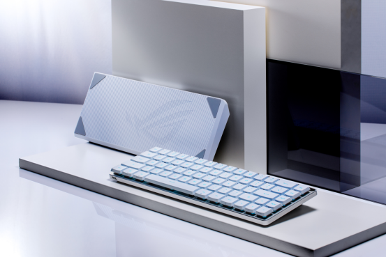 首先是电竞玩家们期待已久的:ROG魔导士RX Low Profile机械键盘!其采用了全新矮光轴RX Low Profile,独特的1mm超短触发行程,搭配2.8mm总行程设计,可大幅强化响应速度,十分适合电竞玩家!同时,得益于RX光轴的独特设计,其手感表现和稳定性也十分出色。设计方面,其顶部配备了独特的Smart Bar触控条,支持多功能控制,可在多场景下带来更便捷的使用体验。此外,这款机械键盘还支持有线Type-C、蓝牙和2.4GHz无线三模连接方式,570小时超长续航畅玩无忧;搭配SpeedNova和Omni无线连接技术,还可有效提升无线稳定性及便捷性,体验感MAX!