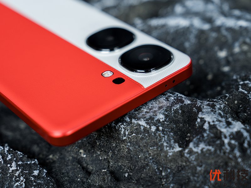 本次入手的iQOO Neo9红白魂配色,不仅采用了素皮材质,细节设计方面也是更加的独特,其中机背红白两色素皮拼接部分严丝合缝,并且还有着缝线点缀,细节方面无可挑剔。另外后置镜头所采用了玲珑方圆设计也更加的小巧,仅占机背整体面积的7.62%,用户横屏玩游戏也不会出现手指染花镜头的情况,另外iQOO Neo9镜头组的凸起也是非常小,视觉上也不会出现头重脚轻的状况。